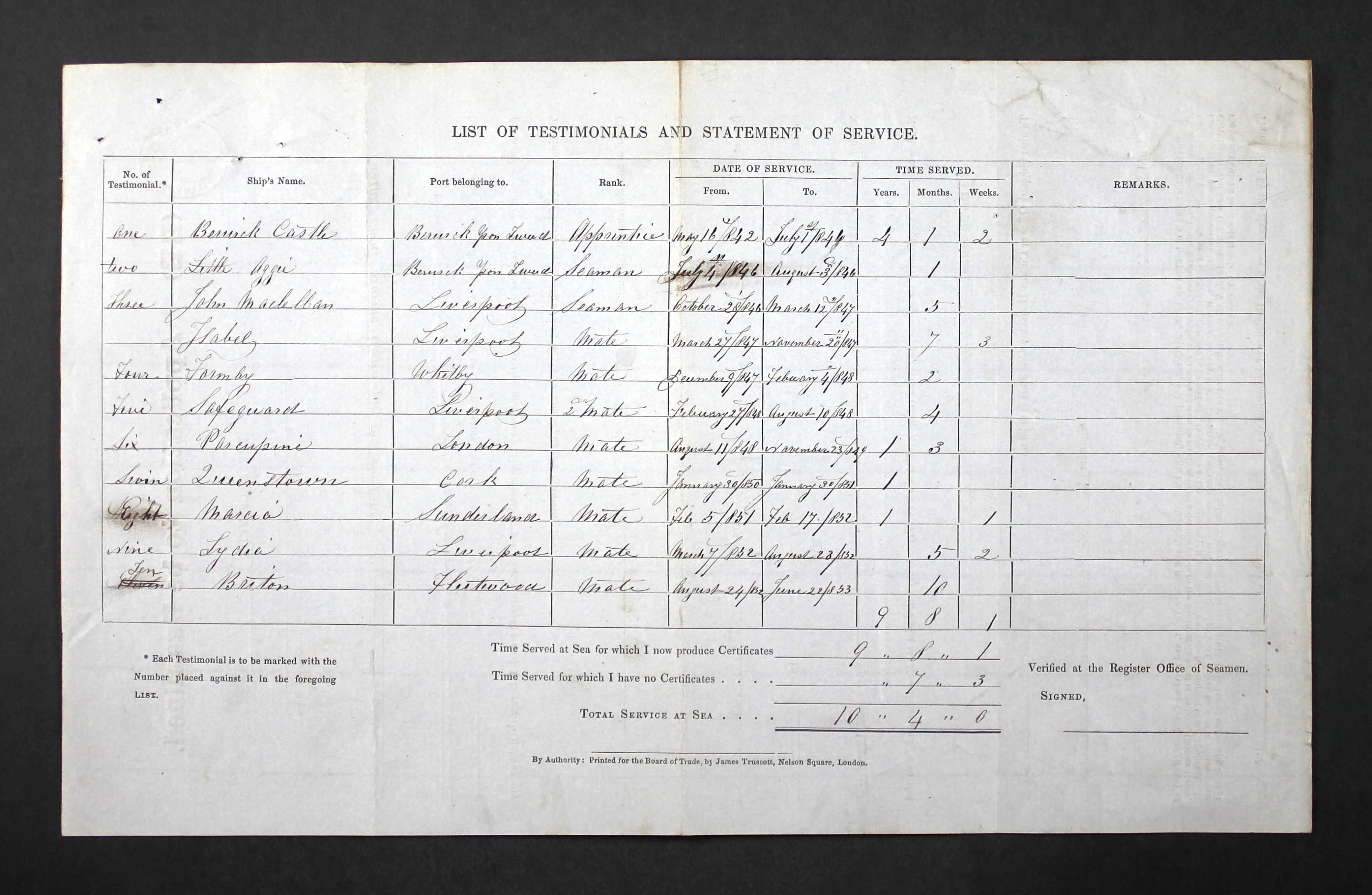 The statement of service on his application is my main source of information about the ships Robert sailed in, so after this date I am reliant on official records and occasional mentions in newspapers.